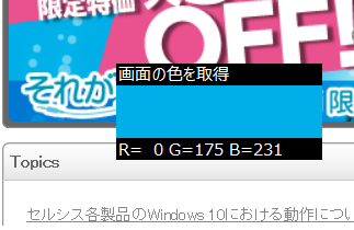 同手順で色を取得される際にカーソル部分に表示されるRGBの