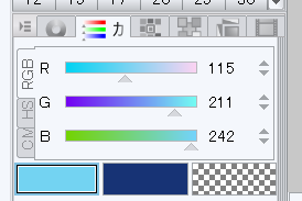 値と、クリックして取得後、CLIP STUDIO PAINTのカラースライダー