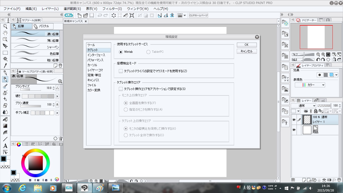 初投稿になります。昨日 intuos CTH 490/k1を購入したのですが、付属の2年clip studio paint proを使用できるということで、購入したのですが、上記のペンタブでキャンバスに描写ができません、Windows標準搭載のペイントでは描くことが出来ました。他の質問、回答等に存在する、(ファイル→環境設定→マウス…)の方法も試しましたが、描けません。色の選択、ツールの選択、レイヤーの選択、等も、此方の質問と回答に掲載されている方法はすべて試しましたが、異常、ミス、等は、ありませんでした。選択範囲解除のミスもありませんでした。ちなみにclip studio は3回、アンインストール、再インストールをしました。必ず毎回、program file から削除していました。マイドキュメントも同じく削除、ちなみにペンタブドライバのインストール時、ワコム公式よりダウンロードした、clip studio は古いver.1..4.2でした。ワコム公式も早く最新版の配信に変えるべきですよね。尚、当然、只今使用しておりますのは、clip studio最新版のver.1.4.3 、となっております。尚、ペンタブにて描写ができない現象が、起きているのは、ver.1.4.3です。ペンタブのドライバver.情報等は、少ないですが、ご利用環境等の項目にてご確認をお願い致します。ペンタブのドライバインストールについても初め、付属の説明書通りの手順で、まずWebを開き、ペンタブを繋ぎ、ドライバインストールディスクを使用しました。初め使用した際は、Windowsが検出した、ドライバも全て、導入し、手順に従い、インストールディスクよりドライバを導入しました。そこから、ワコム公式にWebが接続され、製品登録を行い、clip studio をダウンロード致しました。尚、ワコム公式よりダウンロードした clip studio は先程記述した通り、古いverでした。clip studio起動後、直ぐにアップデート致しました。アップデート終了後、ワコム公式より入手したシリアルコードを入力し、照合が完了しました。すると clip studio 様のサイトに接続された後、clip studio paint Proが起動していましたので、ペンタブを使用したところ描写ができませんでした。最初に述べた、言葉に追記ですが、ウィルス対策ソフトより除外も行いましたが、できません。すいません。話に戻りますが、ペンタブのドライバをWindows自動検出で中止し、ペンタブのドライバダウンローダーからダウンロードしてclip studioで使用してみても描写できません、ワコム公式サイトより、ペンタブのドライバをダウンロードし、インストールしてもclip studioで描写できません、 ワコム公式の質問、回答等に載っている、ペンタブの情報初期化等も、試しましたが、無理でした。他ペンタブの芯替え、パソコンのUSBポート差し替え、等も、全て試しましたが、出来ませんでした。ですが、Windows標準搭載のアクセサリ→ペイントでは使用できるのですが……他にも提示できる情報は多々有りますので、質問、返信等も、お待ちしております。 追記ですが、パソコンはCPU. core i3 2310m memory. 8GB HDD320 です。尚、ペンタブのドライバ及びclip studioのソフトは全て、cドライブに入っています。cドライブ容量は175GBそのうち70.5GB使用しております。 |