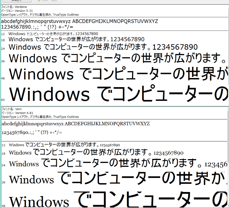 ・使用されているフォントとそのフォントのバージョンを確認