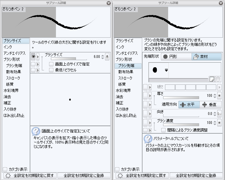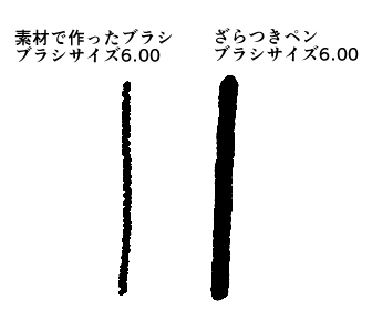 しかし、ざらつきペンのブラシサイズと作ったブラシのサイズが、数値が同じでも大きさが違います・・・