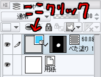 トーンのレイヤーにマスクが付く事により、そのマスクで