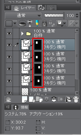 マスクが付いたままだと、フキダシの拡縮時に部分的に消えてしまう場合があります。