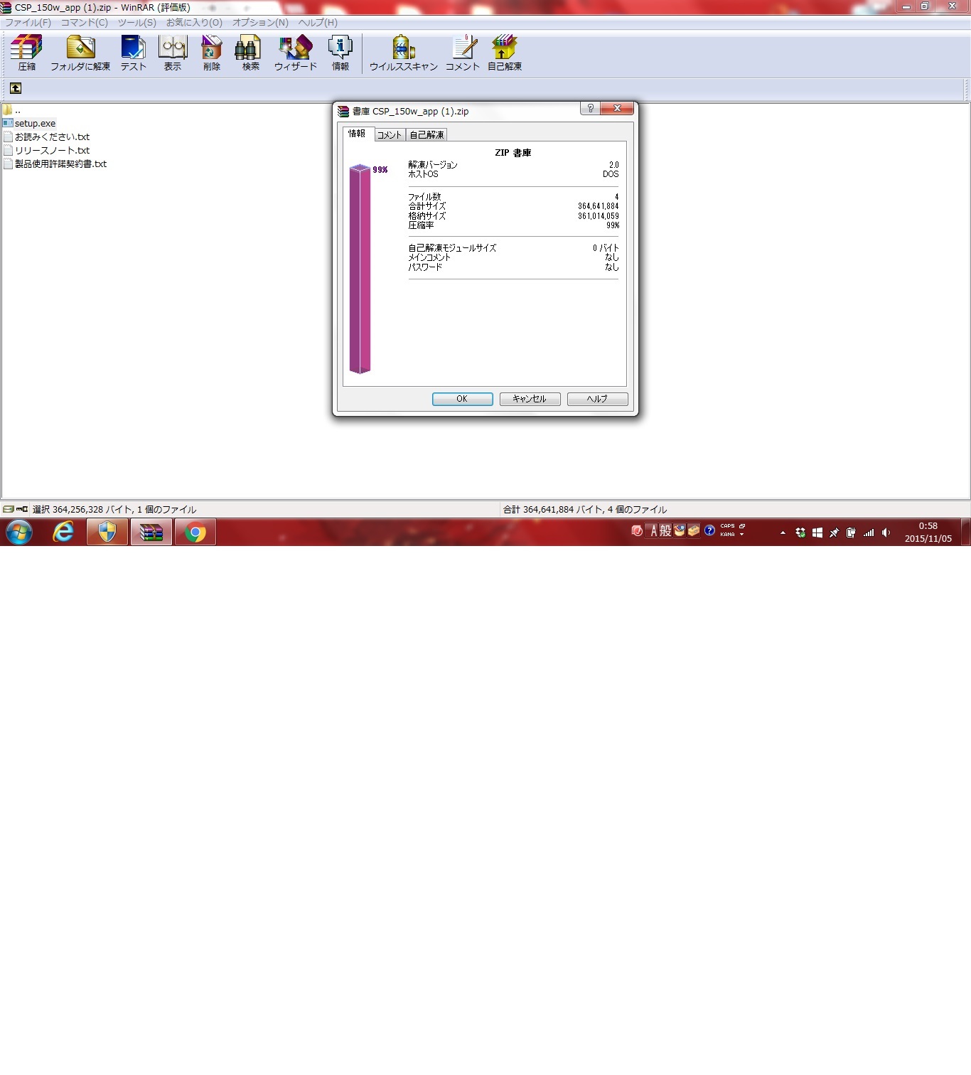 ファイル保管場所での右クリック、WINRAR評価版内での右クリックを試しましたが結果は同様でした。