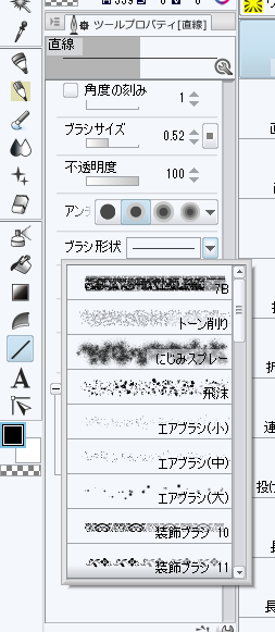 そのあと直線や長方形ツールに変えてツールプロパティのブラシ形状という場所から登録したパターンを選んで描画します。