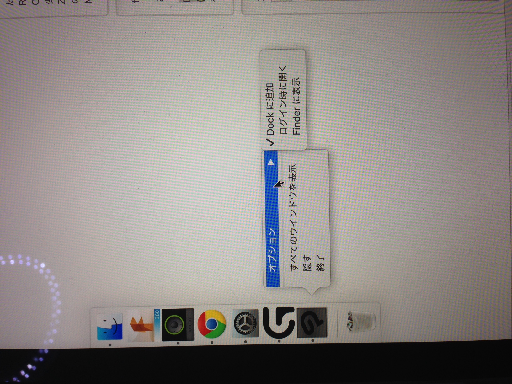 Dockを右クリックしてオプションを選択した状態の画像を添付させていただきました。