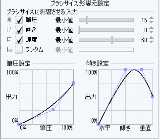 ペンの描き味がすさまじく軽くて困ってます。滑りが良すぎるというのでしょうか。 なんというかブレーキのようなものがほしいのです。 手ぶれ補正を100にしても軽さがとれず、しかも描き終わりに変に細くなるため使えません。 筆圧検知レベルの問題なのでしょうか? 力の入れ具合をわざと無茶苦茶にしてもぜんぜん軽いのですが…… ------------------------------------------------------------ ■バージョン: ※Windowsは、[ヘルプ]メニュー → [バージョン情報]で確認できます。 ※MacOSXは、[CLIP STUDIO PAINT]メニュー → [バージョン情報]で確認できます。 ■グレード DEBUT( ) comico( ) PRO( ○ ) EX( ) ■OS Windows XP( ) Windows Vista( ) Windows 7 ( ) Windows 8( ) Windows 8.1( ) Windows 10( ○ ) MacOS X 10.5( ) MacOS X 10.6( ) MacOS X 10.7( ) MacOS X 10.8( ) MacOS X 10.9( ) MacOS X 10.10( ) MacOS X 10.11( ) その他( ) ------------------------------------------------------------ |