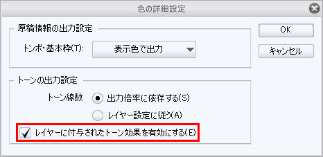 書き出し設定ダイアログの[色の詳細設定]で、[レイヤーに付与された