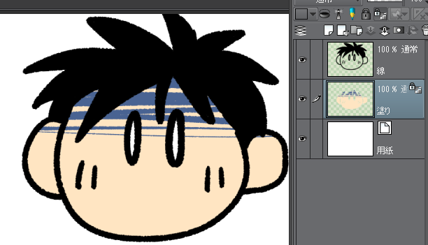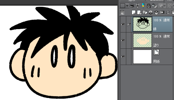 線画と肌色の塗りのレイヤーを両方透明ピクセルにロックすると、今度は一切塗れなくなってしまいます。