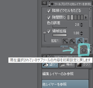 お教えいただいた通り、まずはいったんリセットした上で、「隣接ピクセルをたどる」設定にし直して作業しています。「透明ピクセルにロック」の意味、機能を理解できているのか我ながら怪しいと感じていますが、当座この状態で進めてみようと思います。