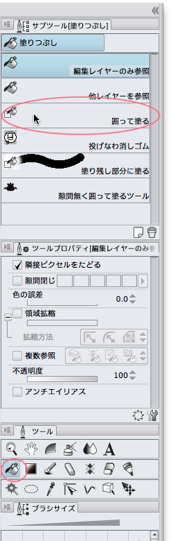 範囲を指定して 中を一気に塗りつぶす方法などはあるのでしょうか?