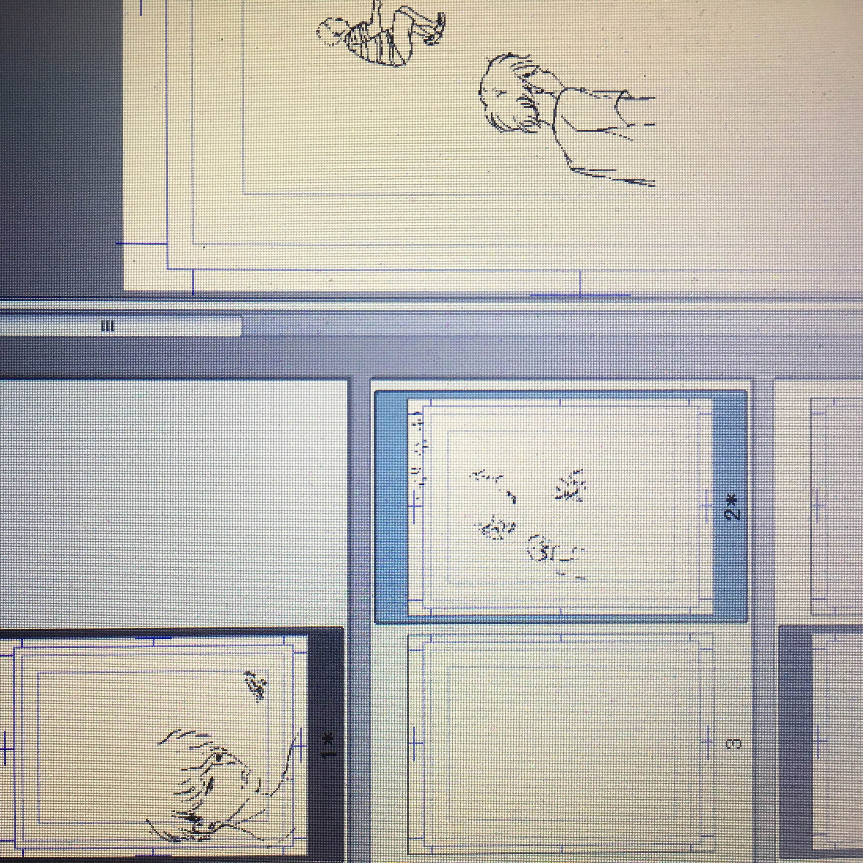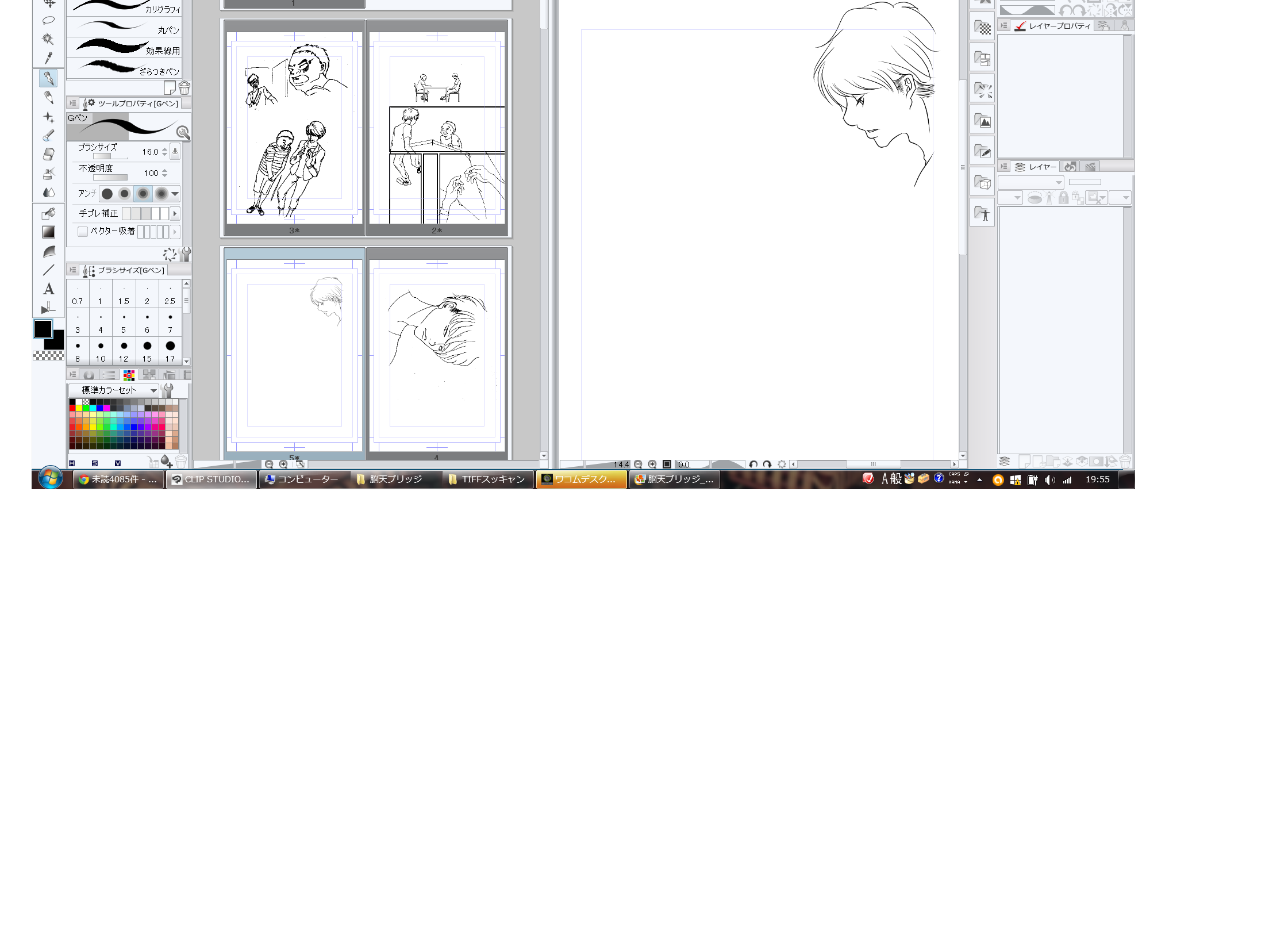 >クリスタ上左側にあるサムネイルに表示される各ページの絵が