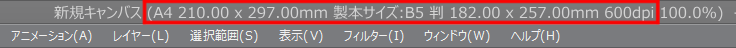 また、[新規]にてキャンバス作成時に製本サイズを設定して