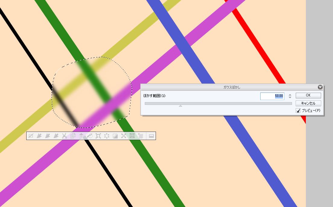 一部分だけをぼかしたい時にいつもその部分を選択してからガウスぼかしをしているのですが、このやり方ですと境界線がハッキリ分かってしまいます。 これをもっと自然に境界線が分からないように段々とぼかしたいのですが、どうすればよいのでしょうか? よろしくお願いします。 ![]() ------------------------------------------------------------ ■バージョン:1.5.6 ※Windowsは、[ヘルプ]メニュー → [バージョン情報]で確認できます。 ※MacOSXは、[CLIP STUDIO PAINT]メニュー → [バージョン情報]で確認できます。 ■グレード DEBUT( ) comico( ) PRO( ) EX( ○ ) ■OS Windows XP( ) Windows Vista( ) Windows 7 ( ) Windows 8( ) Windows 8.1( ) Windows 10( ○ ) MacOS X 10.5( ) MacOS X 10.6( ) MacOS X 10.7( ) MacOS X 10.8( ) MacOS X 10.9( ) MacOS X 10.10( ) MacOS X 10.11( ) その他( ) ------------------------------------------------------------ |