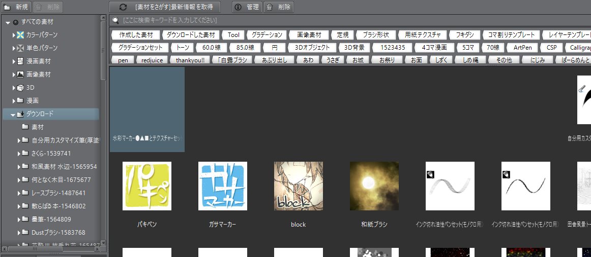 CLIP STUDIOを再起動していただき、改めて[素材をさがす]から