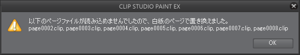 7ページほどですがすべて描き終え、リネ-ム後も一度確認し、このときは特に問題なかったので(すでに開いていたから?) ファイルを閉じました。 もう一度ファイルを開くと、「読み込めなかったので白紙に置き換えます」のような文言が出てこれまであったデ-タがなくなってしまいました。 エラ-文言ももう見えなくなってるので、正確ではないですが白紙に置き換えるというのは確かです。