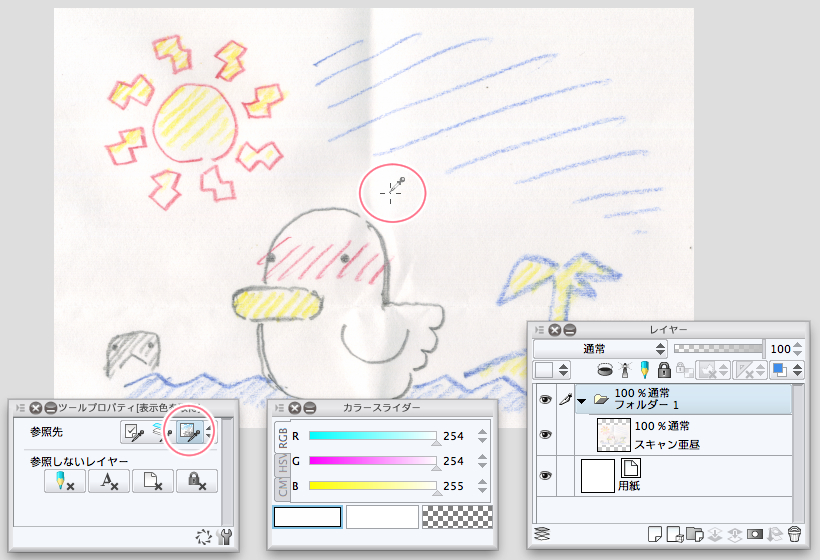 閲覧ありがとうございます。 アナログ(色鉛筆)で描いたカラーの線画の抽出の方法が分かりません。黒一色の線画の抽出はお見かけしましたが、カラーの線画の抽出方法にはたどり着かなかったので質問させていただきます。重複していましたら大変申し訳ありません。 汚れを除去し、線画以外を透明化させたいです。 輝度を透明化を試しましたが線画が黒くなってしまい、だめでした。 使用ソフトはCLIP STUDIO PAINT EX ver1.2.8です。 初心者ですので、具体的に教えていただけますと幸いです。 何卒よろしくお願い致します。 ---------------------------------------------------- ■使い方講座 使い方講座名: 講座のURL: ■Webブラウザ InternetExplorer7( ) InternetExplorer8( ) InternetExplorer9( ) InternetExplorer10( ) Internet Explorer11( ) Microsoft Edge( ) Firefox( ) Google Chrome( ) Safari( ) その他( ) ■OS Windows XP( ) Windows Vista( ) Windows 7 ( ) Windows 8( ) Windows 8.1( ) Windows 10( ) MacOS X 10.5( ) MacOS X 10.6( ) MacOS X 10.7( ) MacOS X 10.8( ) MacOS X 10.9( ) MacOS X 10.10( ) MacOS X 10.11( ) その他( ) ---------------------------------------------------- |