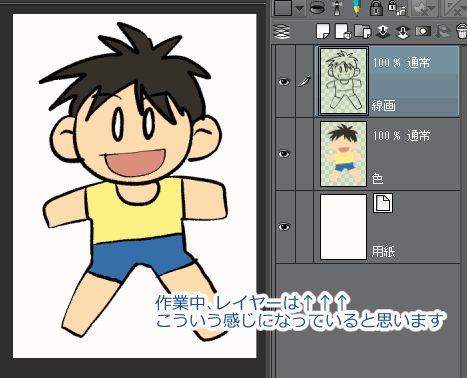 今のところスキャンしたjpgを編集している段階なので線と色のレイヤーがあるわけではない状態です。