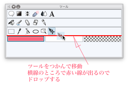 ワークスペースのツールのボックス表示についてなのですが、 虫眼鏡や移動・操作などのアイコン四つ程度ごとに区切られている 横線部分を弄っている間に一つにまで減らしてしまいました。 この線を任意の数に増やしたいのですが (任意にボックス分け出来るようにしたいのですが) 可能でしょうか? せめて数を元に戻す方法を教えていただければ幸いです。 よろしくお願いいたします。 ------------------------------------------------------------ ■バージョン: ※Windowsは、[ヘルプ]メニュー → [バージョン情報]で確認できます。 ※MacOSXは、[CLIP STUDIO PAINT]メニュー → [バージョン情報]で確認できます。 ■グレード DEBUT( ) comico( ) PRO( ) EX( ) ■OS Windows XP( ) Windows Vista( ) Windows 7 ( ) Windows 8( ) Windows 8.1( ) Windows 10( ) MacOS X 10.5( ) MacOS X 10.6( ) MacOS X 10.7( ) MacOS X 10.8( ) MacOS X 10.9( ) MacOS X 10.10( ) MacOS X 10.11( ) mac OS 10.12( ) その他( ) ------------------------------------------------------------ |