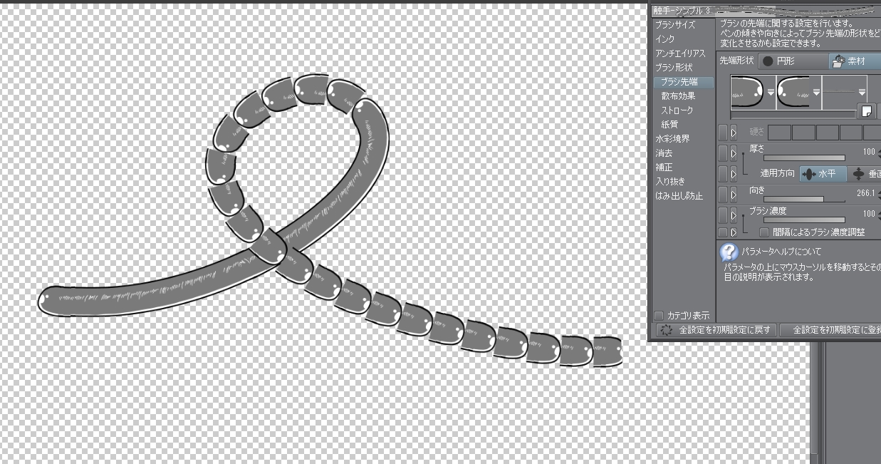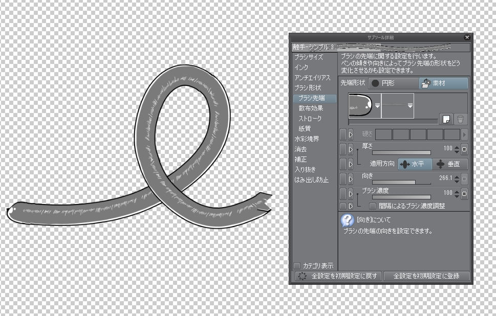 先が丸くなっている先端用の画像素材を作成していただき、[サブツール詳細]