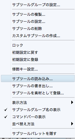 サブツールパレット左上のボタンより『サブツール読み込み」を選択しましたが、該当するサブツールがどれにあたるのかわかりませんでした。
