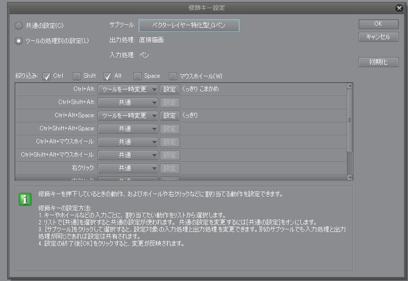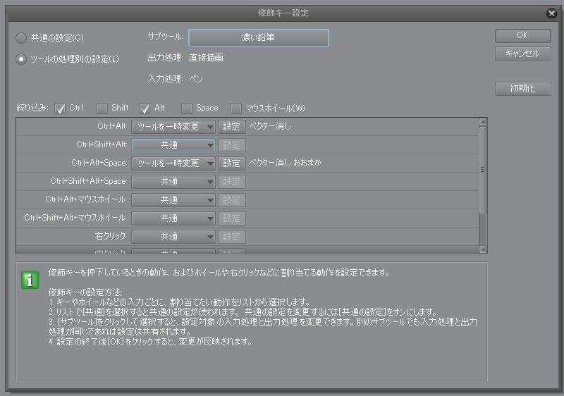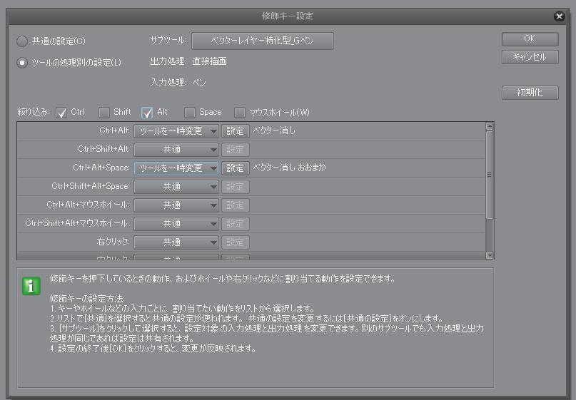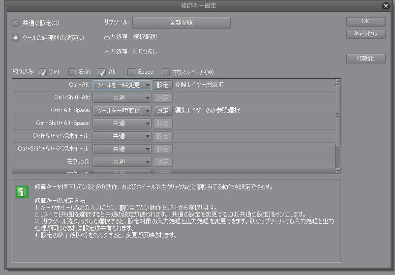 [Ctrl+Alt]に割り当て設定がある全てのツールの