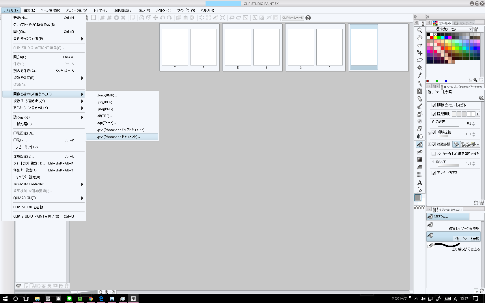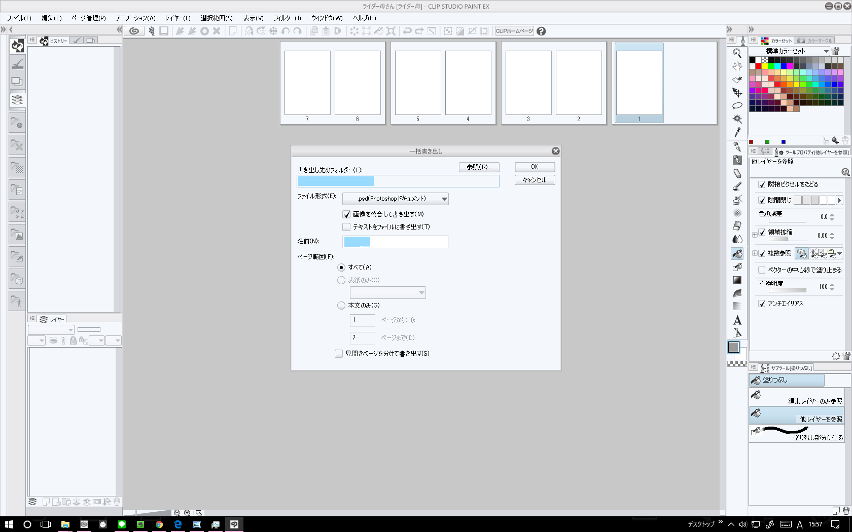 [画像を統合して書き出し]、[複数ページ書き出し]→[一括書き出し]共に