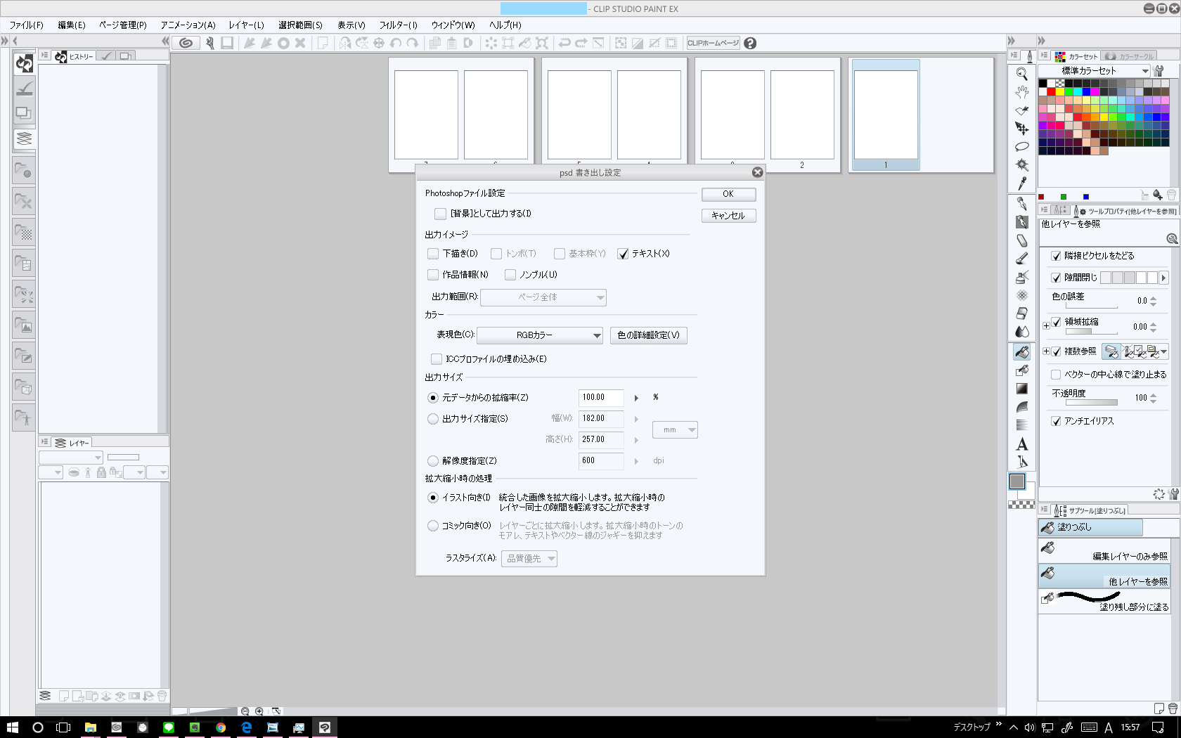 ページ管理から、「画像を統合して書き出し」「一括書き出し」の際、 出力範囲が選択できなくなってしまいました。 出力範囲の項目がグレーになっていて、選択ができません。 一頁ずつの場合は、出力範囲はちゃんと選べます。 先刻までは出来ていたんですが、昔のデータを置き換えるなどしていたら出来なくなりました。 設定などいじった記憶もないので、なにかこちらの原因があるようでしたら教えていただきたいです。 よろしくお願いします。 ------------------------------------------------------------ ■バージョン: ※Windowsは、[ヘルプ]メニュー → [バージョン情報]で確認できます。 ※MacOSXは、[CLIP STUDIO PAINT]メニュー → [バージョン情報]で確認できます。 ■グレード DEBUT( ) comico( ) PRO( ) EX( ○ ) ■OS Windows XP( ) Windows Vista( ) Windows 7 ( ) Windows 8( ) Windows 8.1( ) Windows 10( ○ ) MacOS X 10.5( ) MacOS X 10.6( ) MacOS X 10.7( ) MacOS X 10.8( ) MacOS X 10.9( ) MacOS X 10.10( ) MacOS X 10.11( ) mac OS 10.12( ) その他( ) ------------------------------------------------------------ |