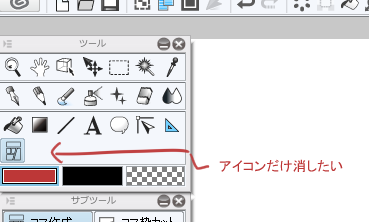 ツールパレットのアイコンだけを消す方法を教えてください。 |