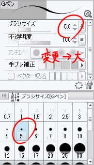 ブラシサイズパレットのほうに変更しましたら、無事その通り変更することができました。