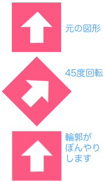 ベクターで輪郭を描けば回転しても綺麗なままですが
