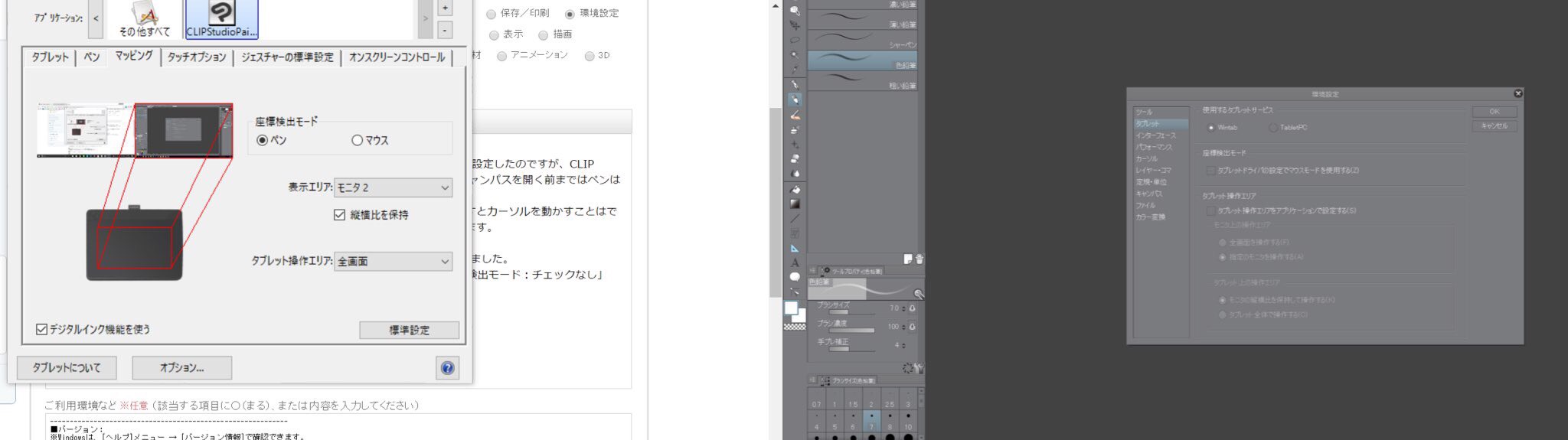 ・ご使用のペンタブレットの型番、ドライババージョンを