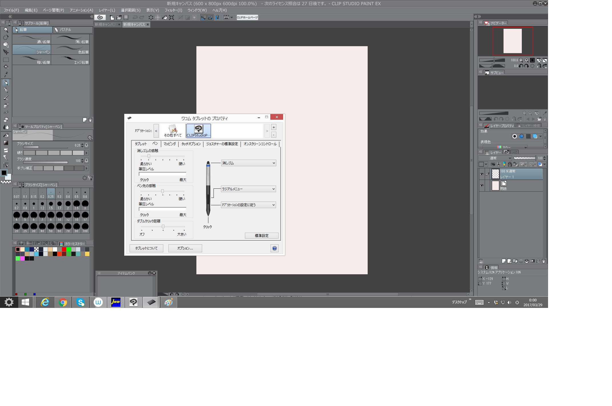 CLIP STUDIO PAINTでの動作となりますので、[ワコムタブレットの