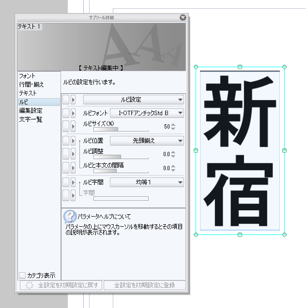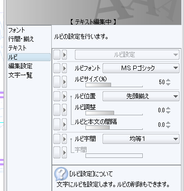 テキストにルビを振る場合には、以下の手順にて行っていただくことが