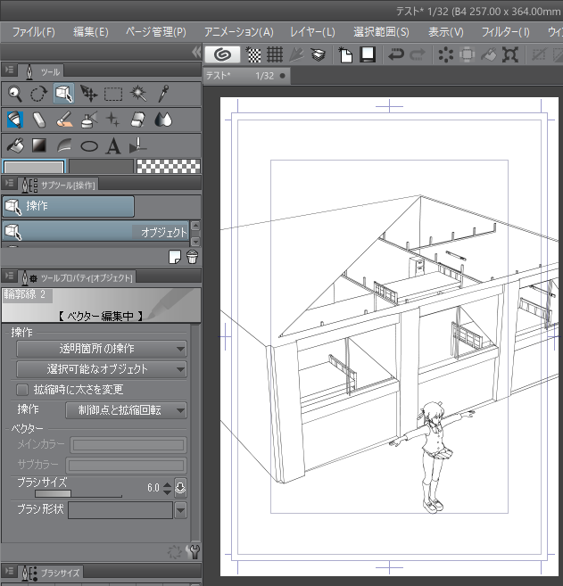 クリスタの「オブジェクトスケール」の数値を上げてみることで