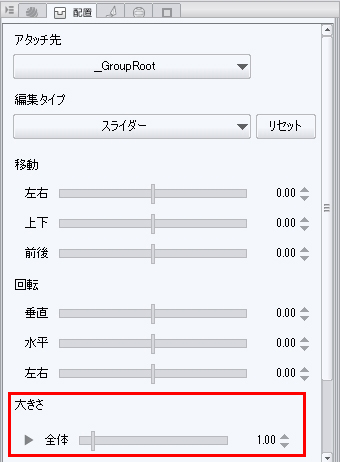 アクセサリーなどの付属パーツのサイズを変える場合は、
