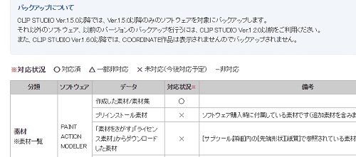 「ソフトウェアバックアップ」の内容に「作成した素材」が含まれているのですが、