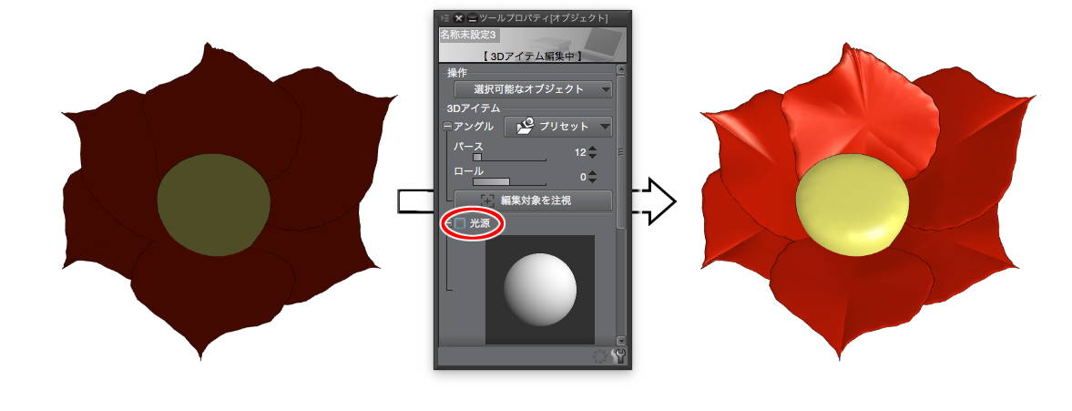 1)サポート担当者さんからのコメント:CLIP STUDIO PAINT 3Dレイヤーの『光源』を有効にする