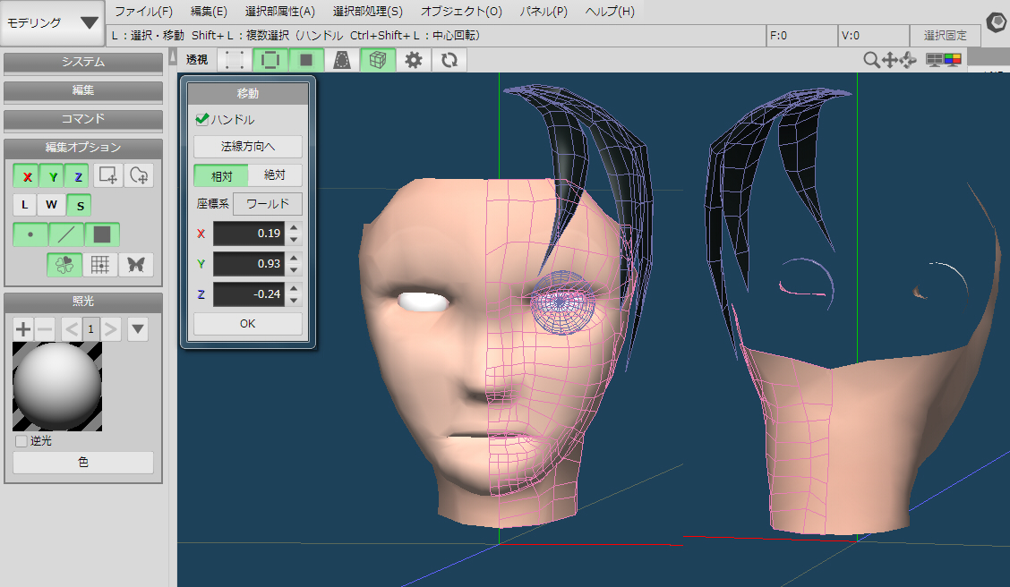 上手く説明がつかないのですが、裏側に回した際に点や辺の表示が一切なくなったり、オブジェクトの位置に関係なく点や辺が透けて見えてしまうようになっており非常に困っております。 どういう状況でなったのかはっきりしていないですがやり直しをしたあとに編集しようとして気がついたので、 ショートカットの押し間違いかと思い、環境設定を見たり、ソフトを入れなおしてみたりいろいろしてみましたが、全く解決しませんでした。新規ファイルでも同様のことが起きるのを確認済みです。 このままだととても作業ができないので解決策があれば教えていただけたら助かります。 ![]() ------------------------------------------------------------ ■Metasequoia4 バージョン:4.4.0 64bit ※[ヘルプ]メニュー→[バージョン情報]で確認できます。 ■グレード Standard( ○ ) EX( ) ■OS Windows XP( ) Windows Vista( ) Windows 7 ( ○ ) Windows 8( ) Windows 8.1( ) その他( ) ------------------------------------------------------------ |
