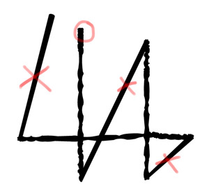 添付画像の×印のような「描いてない線」がかってに発生します。