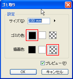 [ゴミ取り]ツールを使うときは、ツールパレットで描画色を[透明]にして