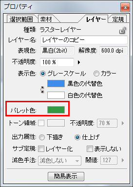 レイヤーのアイコンをダブルクリックしてプロパティを出し、