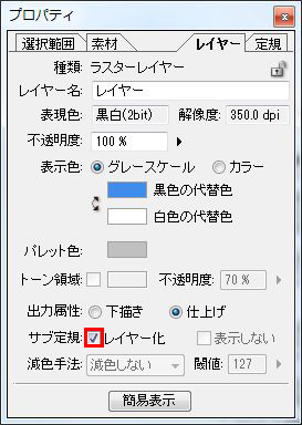 ダブルクリックしてサブ定規の[レイヤー化]にチェックを入れます。