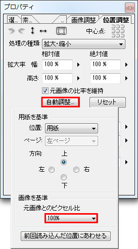 自動調整時にはmm単位で調整が行われますため、画像のピクセルサイズに