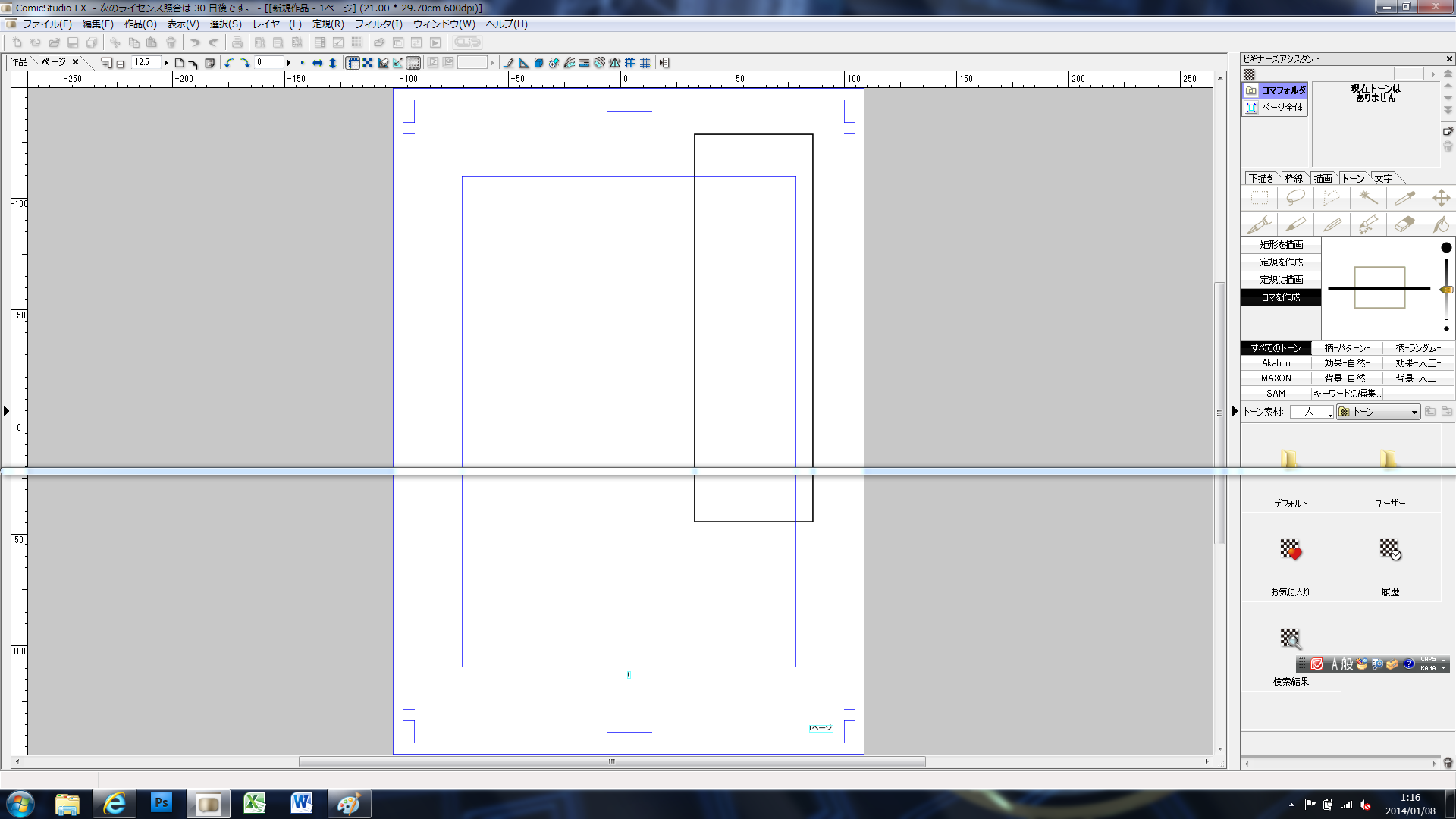 「枠線定規の拡張」のダイアログが横長に変形してしまい、もとに戻らなくなってしまいました。 一応ダイアログ上で右クリックをすると「移動」「閉じる」の選択はできるのですが、 肝心の拡張機能が使えないので困っています。 ショートカットキーでダイアログ立ち上げはできますが、 「×」ボタンが出ないのでESCキーで閉じるしかない状況です。 何かを連続的に押してしまったとか、なにか原因があるとは思うのですが いつも通りの作業中に起こったので何が原因か自分ではわからないです…;; どなたか元に戻す方法をご教授願えないでしょうか… よろしくお願い致します…! ※横切ってる線のようなものがダイアログボックスです ![]() ※比較のために一応…(枠線定規の分割のダイアログです) ![]() ------------------------------------------------------------ ■ComicStudio ComicStudioEX( ○ ) ComicStudioPro( ) ComicStudioMini( ) ComicStudioDebut( ) バージョン:4.6.2 ※[ヘルプ]メニュー→[バージョン情報]で確認できます。 ■OS Windows XP( ) Windows Vista( ) Windows 7 ( ○ ) Windows 8( ) Windows 8.1( ) MacOS X 10.5( ) MacOS X 10.6( ) MacOS X 10.7( ) MacOS X 10.8( ) MacOS X 10.9( ) その他( ) ------------------------------------------------------------ |