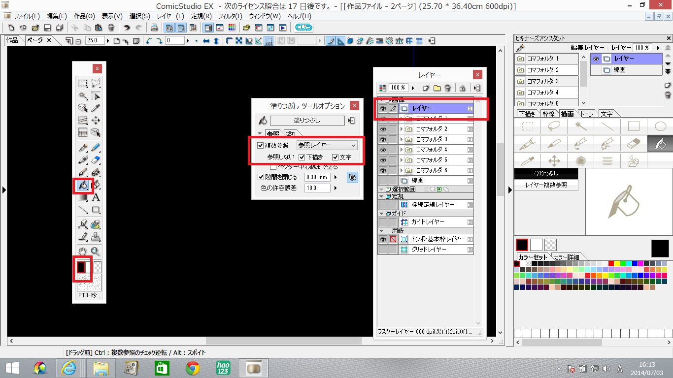 そちらを[レイヤー]パレットにて一番上に配置した上で、塗りつぶしツールを