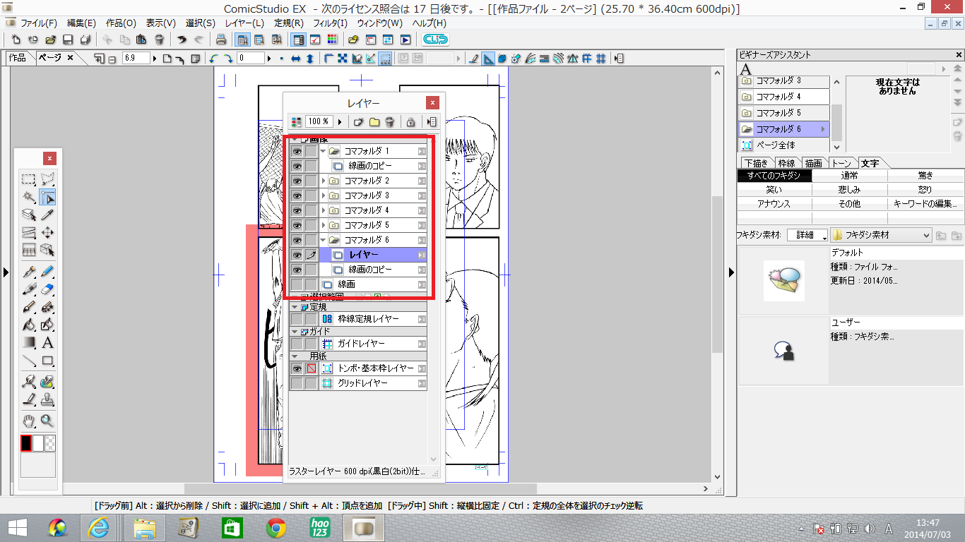 ①コマフォルダを使っているので、新規ラスターレイヤーを一番上に移動できません。