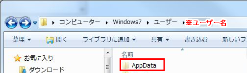 なお、[AppData]フォルダはWindows7のOSで、作成されるフォルダで