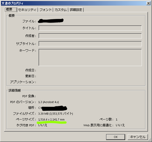 お世話になります。 B5で印刷できるPDFファイルを作成するために、 ページサイズ182mm×257mmのPDFファイルに書き出しをしようとしています。 「書き出し」→「画像ファイル(寸法指定)で、「出力サイズ指定」で幅182.00mm、高さ257.00mmに設定して 書き出しを行っているのですが、完成したファイルのページサイズは1,516.5×2,141.7mmとなってしまい、 意図よりはるかに大きなファイルになってしまいます。 どうすれば、182mm×257mmのPDFファイルを作成できるのでしょうか? 下記、スクリーンショットを添付致します。1枚目はコミスタ、2枚目はAdobe Readerです。 よろしくお願い致します。 ![]() ![]() ------------------------------------------------------------ ■ComicStudio ComicStudioEX( ○ ) ComicStudioPro( ) ComicStudioMini( ) ComicStudioDebut( ) バージョン: ※[ヘルプ]メニュー→[バージョン情報]で確認できます。 ■OS Windows XP( ) Windows Vista( ) Windows 7 ( ○ ) Windows 8( ) Windows 8.1( ) MacOS X 10.5( ) MacOS X 10.6( ) MacOS X 10.7( ) MacOS X 10.8( ) MacOS X 10.9( ) その他( ) ------------------------------------------------------------ |