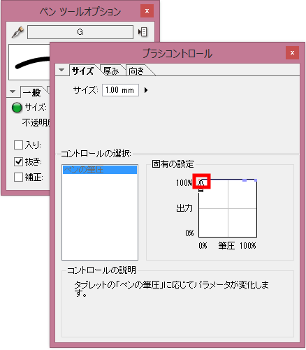 ペンの入り抜き設定が反映されない |